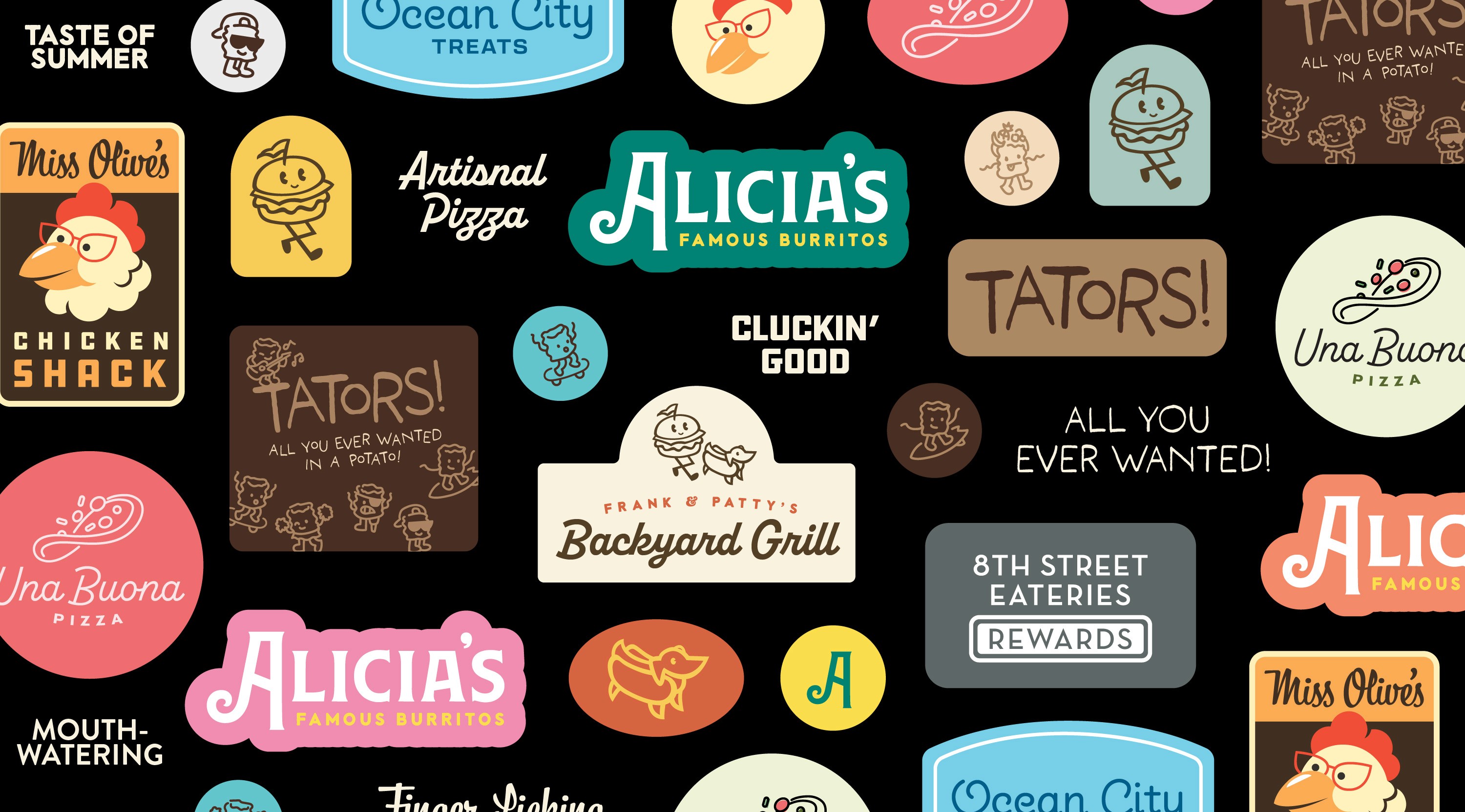 Each vendor received a distinct brand identity, while the overall design system successfully unified the food hall's visual presence across all customer touchpoints, creating both individual vendor recognition and a memorable collective brand experience for 8th Street Eateries.
