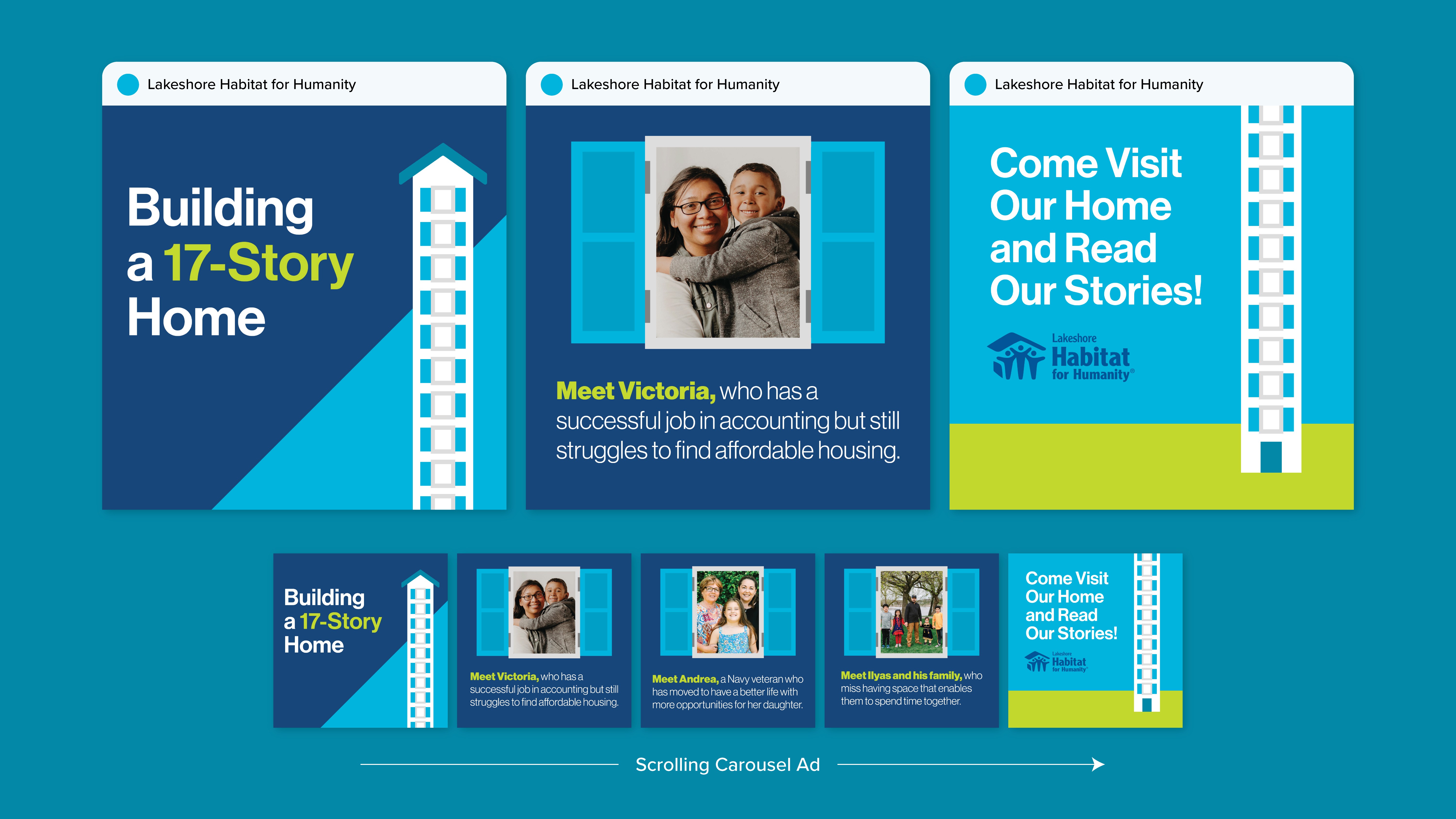 In order to inspire donors to engage with helping the community, Lakeshore Habitat for Humanity (LHFH) needed friendly, easy-to-understand collateral that highlighted their mission to house in-need families. Alongside regular communication and advertisement support throughout the year, LHFH shined with a Year-End campaign celebrating the success of building 17 total homes.