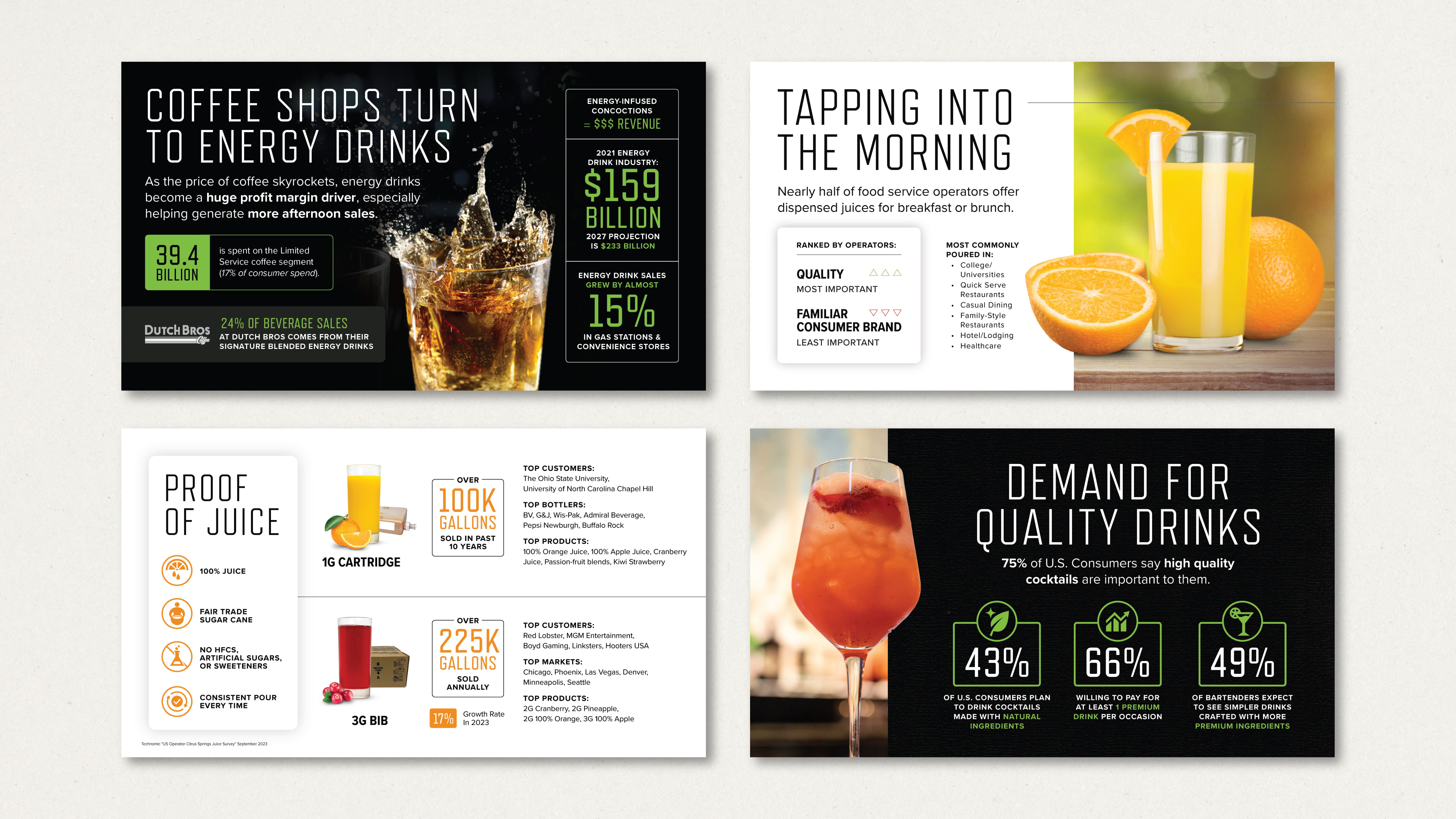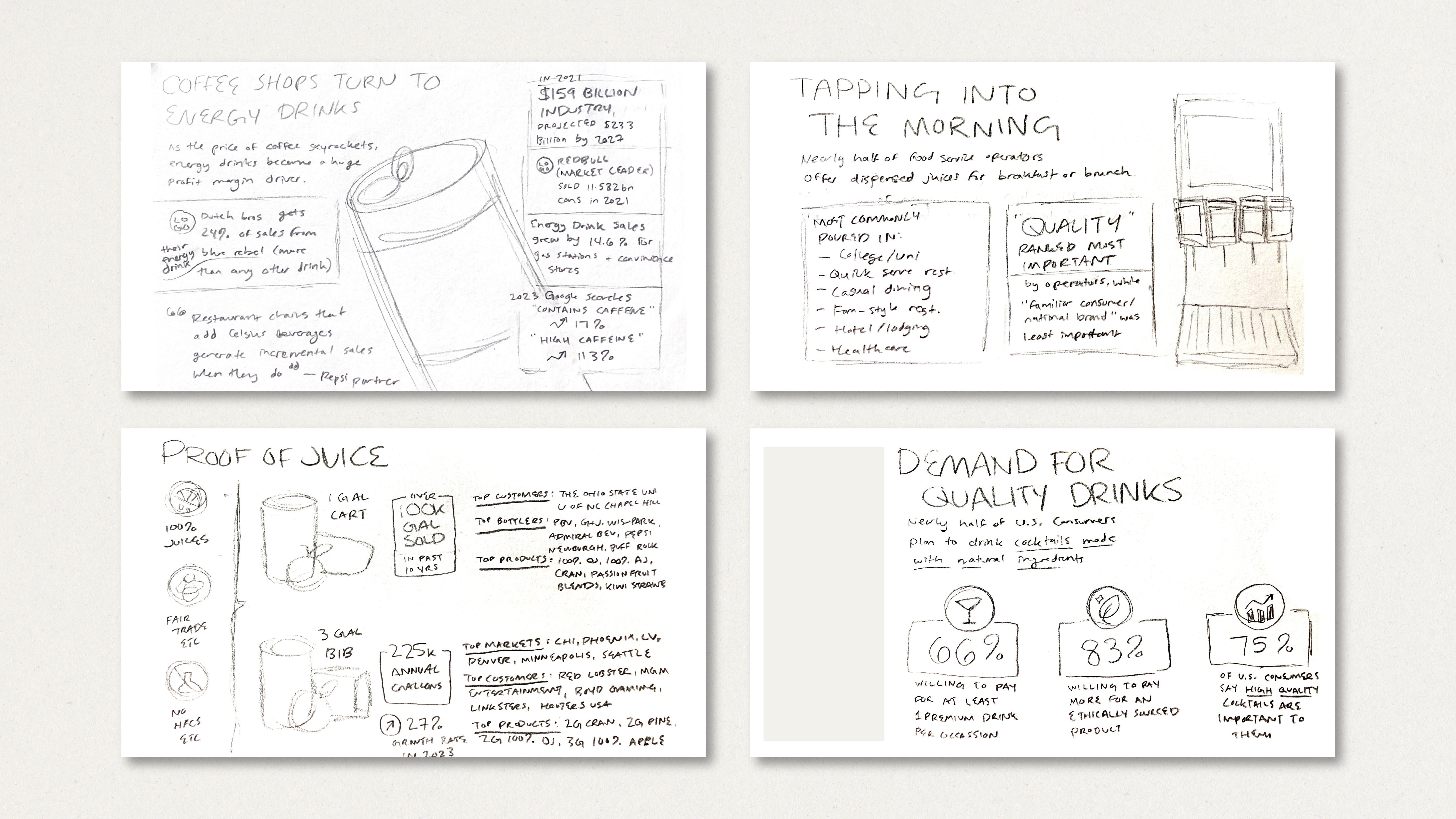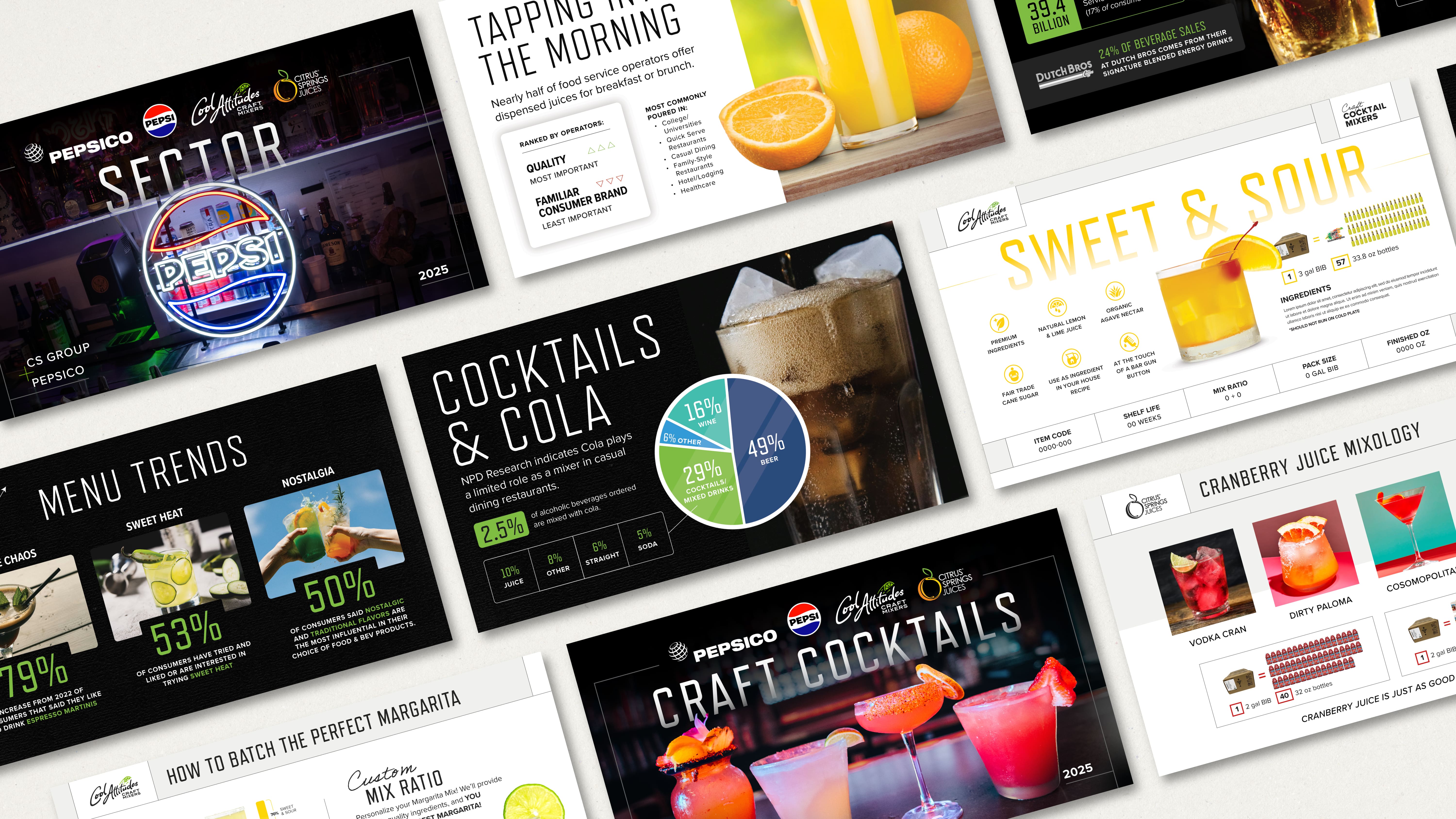 PepsiCo needed a data-backed presentation for their national sales team in order to support selling a variety of different beverage brands. The deck had to communicate relevant trends, data, and product line value.
